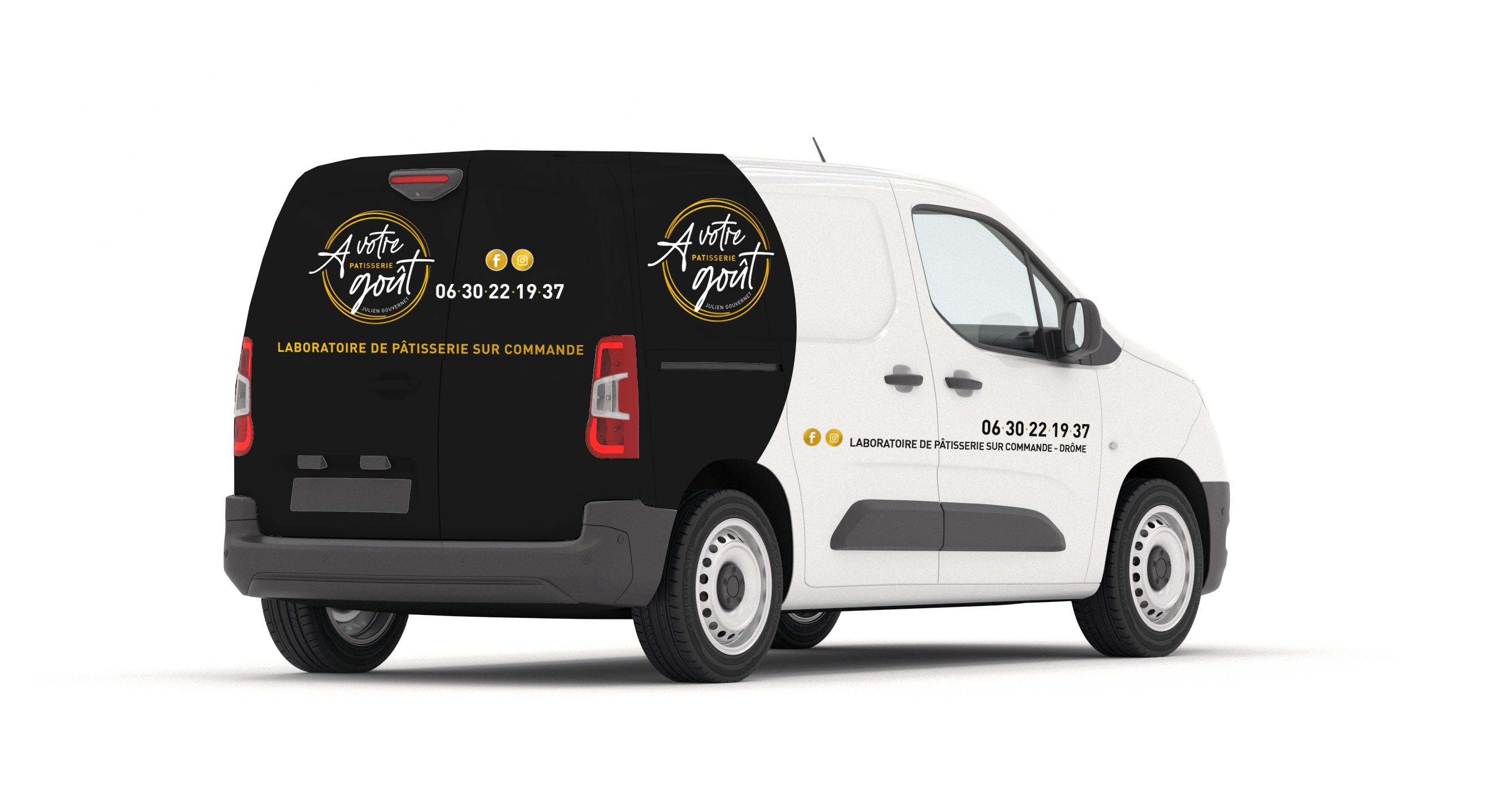 Nous avons ensuite habillé leur véhicule de livraison grâce à un covering aux couleurs de la marque, offrant visibilité et reconnaissance à chaque déplacement.