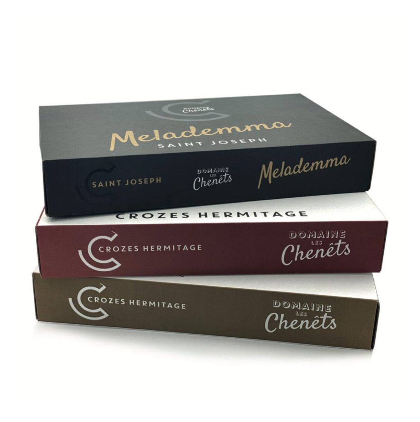 Pour Les Chenêts, j’ai imaginé un univers graphique sobre et élégant : un logo moderne, des étiquettes raffinées, des coffrets premium et un site internet immersif.