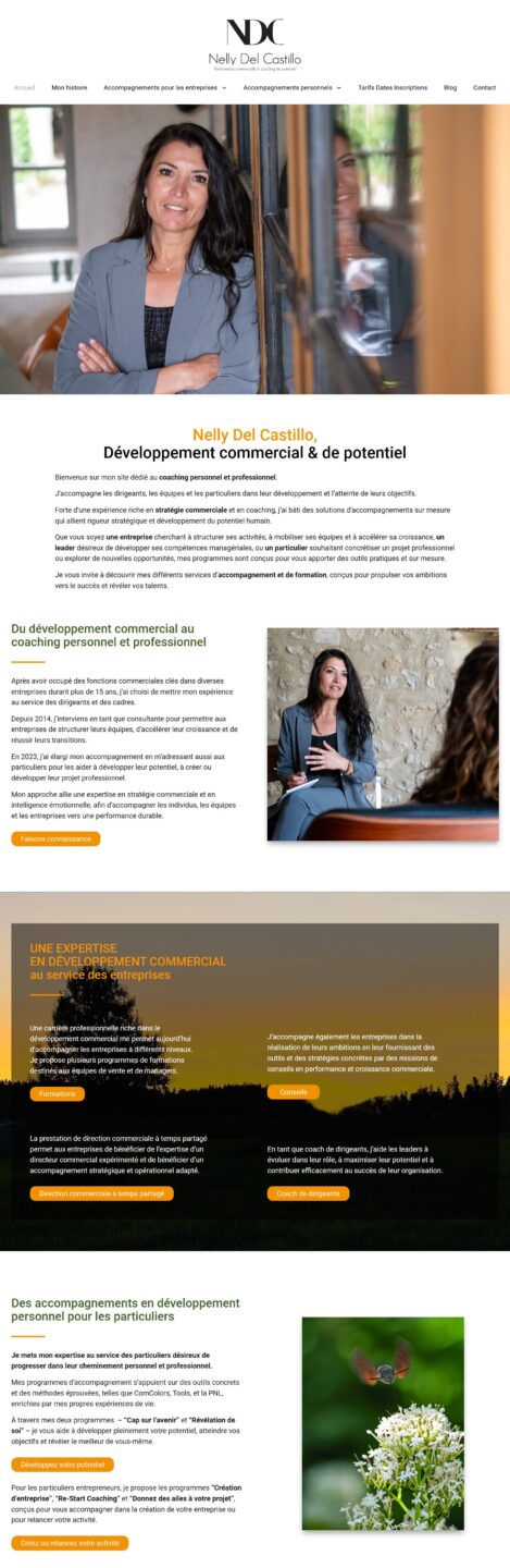 Authenticité, inspiration et élégance : trois mots qui définissent la nouvelle identité visuelle et le site internet que j’ai conçus pour Nelly Del Castillo, coach professionnelle et personnelle.