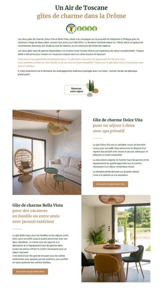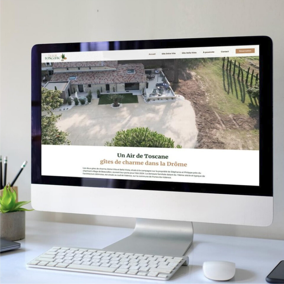 J’ai créé l’identité visuelle et le site internet de mon propre gîte, Un Air de Toscane, imaginé et réalisé avec mon mari près de Valence.
